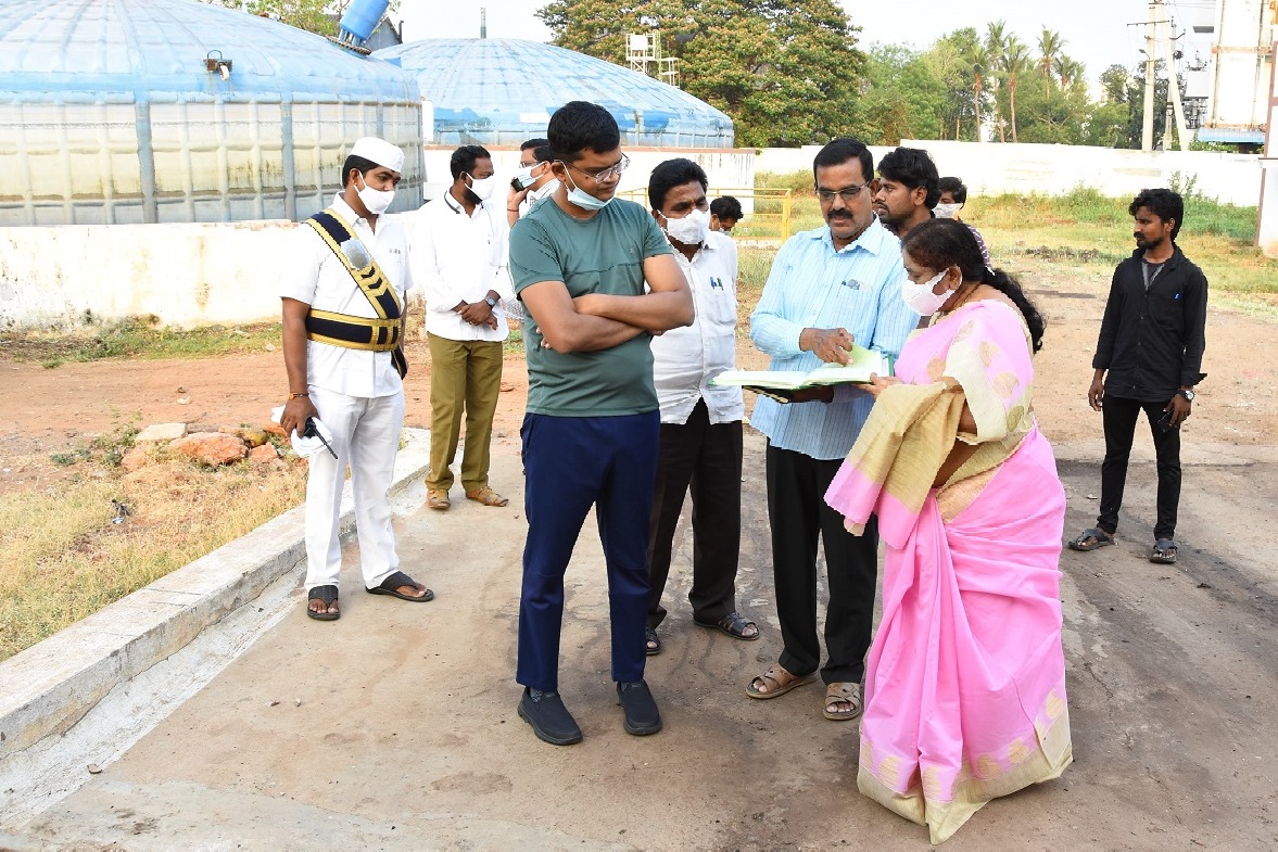 తడి చెత్త నుండి విధ్యుత్ ఉత్పత్తి చేయు బయో మెథనైజేషన్ ప్లాంట్ మరియు మురుగునీటిని శుద్ధి చేయు 60 యం.ఎల్.డి సూయేజ్ ట్రీట్మెంట్ ప్లాంట్ లను పరిశీలించి అధికారులను వివరాలు అడిగి తెలుసుకోన్నారు. 15వ ఆర్ధిక సంఘ నిధులతో ప్లాంట్ నందు చేపట్టవలసిన మరమత్తుల మరియు రినోవేషన్ పనుల యొక్క వివరాలు అడిగితెలుసుకొని అధికారులకు పలు సూచనలు చేసారు.
