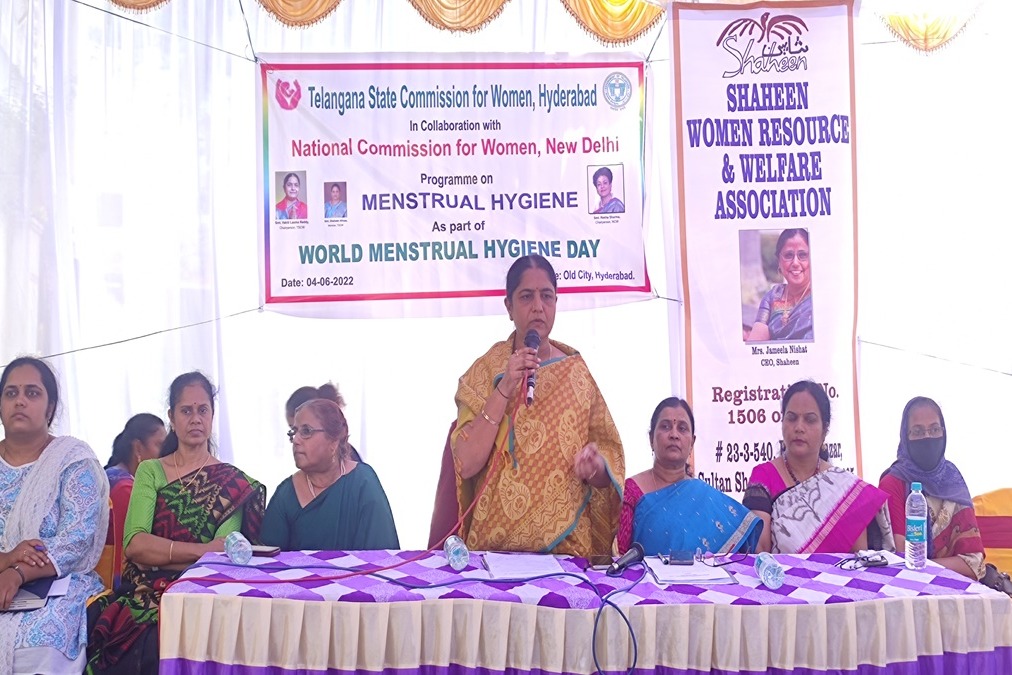 సమాజంలో కొంతమంది అపోహతో అపవిత్రంగా భావించడం జరుగుతుందని, ఇది అవసరం లేదని చెప్పారు. మహిళలు నెలసరి సమయంలో తీసుకోవాల్సిన జాగ్రత్తలపై అవగాహన కల్పించి ఐసిడిఎస్‌ అందిస్తున్న సేవలు వినియోగించుకోవాలని, సూచించారు. ఈ కార్యక్రమంలో అమ్మాయిలకు / మహిళలకు ఉచితంగా శానిటరీ పాడ్స్ పంపిణీ చేయడం జరిగింది. అనంతరం షాహిన్ ఉమెన్ వెల్ఫేర్ ఎన్జీఓ రుతుస్రావం పై అవగాహన కల్పించేందుకు నుక్కడ్ నాటకం చేశారు. తెలంగాణ రాష్ట్ర ప్రభుత్వం ఎక్కడ లేని విధంగా మహిళల ఆరోగ్యం, సంక్షేమం పట్ల అనేక పథకాలు చేపట్టిందని, రెసిడెన్షియల్ పాఠశాలలు, వసతి గృహాలలో నాణ్యమైన భోజన వసతి, విద్య కల్పించారని, అంబేద్కర్ ఓవర్సీస్ నిధి ద్వారా విదేశీ చదువులకు 20 లక్షలు ఆర్ధిక సహాయం అందిస్తున్నారని, కళ్యాణలక్ష్మి, షాదీముబారక్ ద్వారా ఆడపిల్లల వివాహాలకు ఆర్ధిక మనోబలం కల్పించారని, ఆరోగ్య లక్ష్మి, కెసిఆర్ కిట్స్ ద్వారా మాతా శిశువులకు ఆరోగ్య, వైద్య సదుపాయాలు కల్పిస్తున్నారని, మహిళలు అన్నింటిలో ఎదగాలని, మహిళల ఆలోచనలకు అనుగుణంగా అన్ని విధాలుగా సహాయం అందిస్తున్నారని చైర్ పర్సన్అ న్నారు. మహిళల హెల్ప్ లైన్ 198 లేదా పోస్టల్, ట్విట్టర్, ఇ మెయిల్త దితర మార్గాల ద్వారా లేదా కమీషన్ నెంబర్ 9490555533 కు మహిళలు  సమస్యలను తెలుపవచ్చునని గుర్తుచేశారు. ఈ కార్యక్రమంలో మహిళా కమీషన్సెక్రెటరీ కృష్ణ కుమారి, షాహిన్ ఉమెన్స్ రిసోర్స్ &; వెల్ఫేర్అ సోసియేషన్ ఫౌండర్  జమీల నిష్షత్, గర్ల్ ఫౌండేషన్ ఫౌండర్ రోహిణి నాయుడు, గైనకాలజిస్ట్ తన్నీరు అనురాధ మరియు సీనియర్ సైకాలజిస్ట్ పద్మ కమలాకర్ తదితరులు పాల్గొన్నారు.