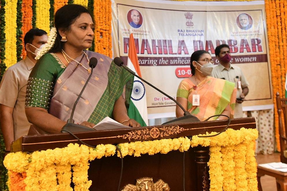 “As a woman, as the Governor, and as the Sister of Telangana, I empathize with the Telangana women,”