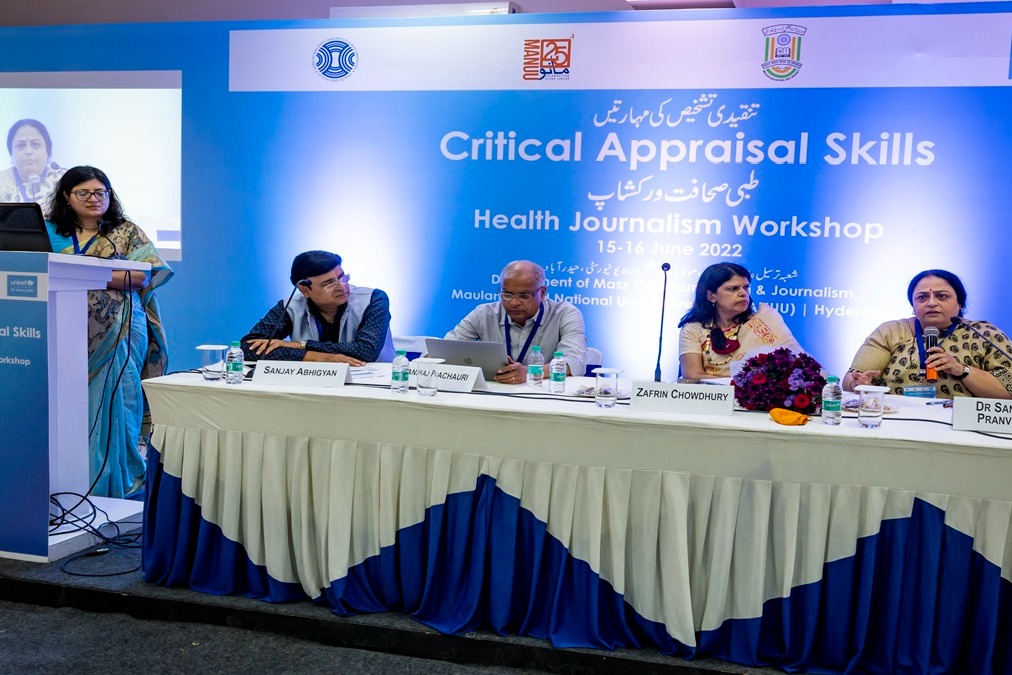 HYDERABAD, 16 June 2022 – A two-day workshop on evidence-based health journalism organized by the Department of Mass Communication and Journalism (MCJ), Maulana Azad National Urdu University (MANUU), in association with UNICEF concluded here today.