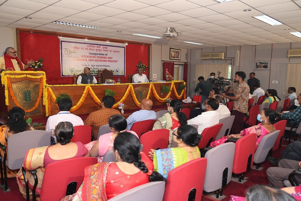 Hon’ble Union Minister of Rural Development and Panchayati Raj, Govt. of India, Shri. GirirajSinghji inaugurated the Integrated Farming Unit of “Moringa and backyard Poultry” at ICAR-Directorate of Poultry Research, Hyderabad, Telangana on 1 st July, 2022. He inspected the newly developed facility at the directorate and appreciated the efforts in creating such a model facility to highlight the benefits of integrated farming. He appreciated the performance of the improved chicken germ plasm developed at this Directorate. He told that the Directorate is striving hard to develop suitable technologies for both commercial and backyard poultry and also in new frontier areas of Nutrition, Health and Biotechnology.