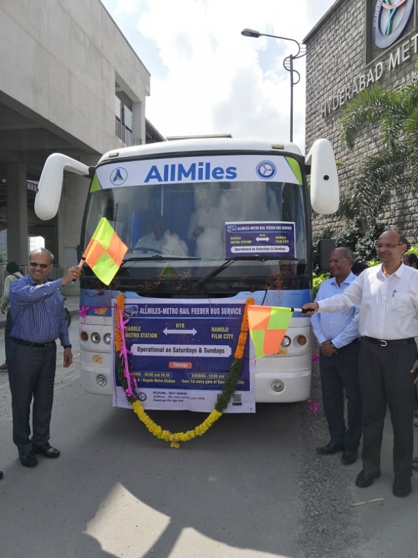 The services were flagged off by Mr. Anil Kumar Saini COO, L&T Metro, and Mr. Rajeev Jalnapurkar, CEO, Ramoji Film City on 2nd Nov 2019 at Nagole metro station. The services are free for a month and people can visit the All Miles app and Nagole/LBNagar station for more details.