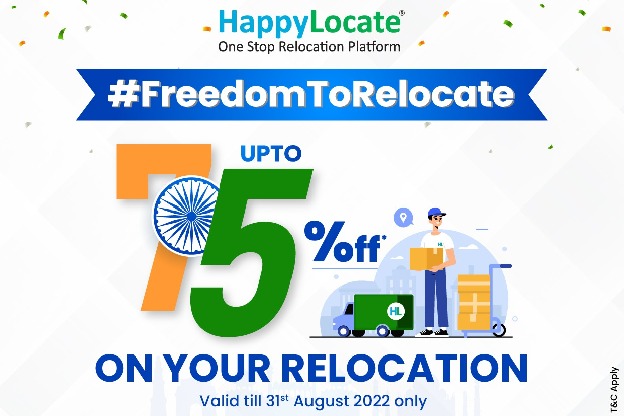 National, 09th August 2022: To celebrate the 75th year of India’s Independence, HappyLocate- India’s first tech-based one-stop relocation platform has announced the launch of its new campaign #FreedomToRelocate. With this, HappyLocate has also announced a special Independence Day discount of up to 75% on all the within-city relocation services. The discount is applicable on any booking made across Delhi, Mumbai, Bangalore, Hyderabad, and Pune and is valid till 31st August 2022 only.