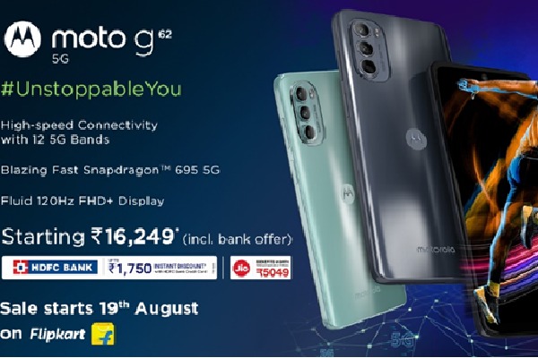 The moto g62 5G will go on sale starting 19th August 2022 in two alluring colour variants namely Midnight Gray, and Frosted Blue, exclusively on Flipkart and leading retail stores. The phone will be available in two variants, 6GB 128GB and 8GB 128GB.