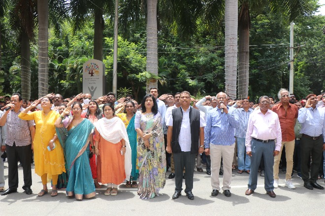 The venue, which was gripped by the patriotic fervour, was reverberated with the slogan of “Jai Hind”, which followed the singing of National Anthem. Sri Ekka, IAS, who spoke on this occasion, said that the completion of 75 years of Independence and the worth-emulating success stories of India in multiple domains,are the historic events, and, therefore, are being celebrated by Central and State Governments by launching such innovative campaigns as “Azadika Amrit Mahotsav” and “Har Ghar Tiranga”. Sri Ekka, IAS stated that the completion of 75 years of Independence is the most appropriate occasion for employees to take a pledge toperform their jobs with a high degree of dedication and commitment.