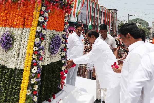Photos of CM K Chandrashekhar Rao at the mass recital of National Anthem at Abids Circle on 16-08-2022