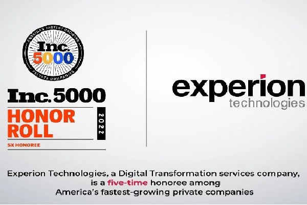 Experion Technologies gets listed in the prestigious Inc. 5000 ranking for the fifth year in a row