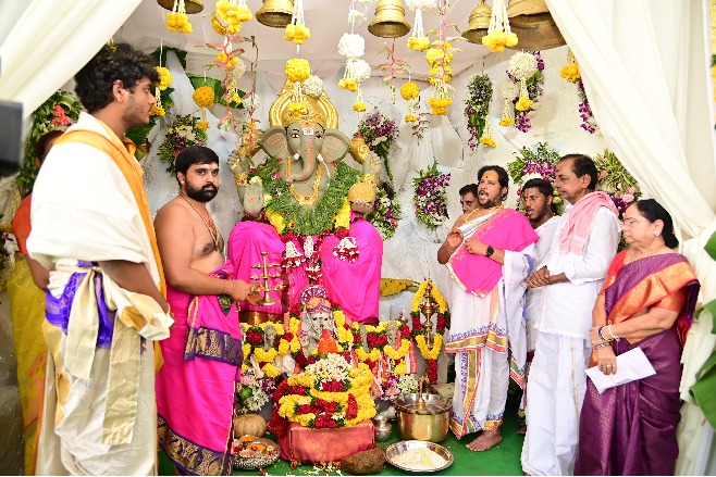 ఫొటోలు:- ఆదివారం ప్రగతి భవన్ లో జరిగిన గణేష్ పూజలు, హోమంలో పాల్గొన్న ముఖ్యమంత్రి కె.చంద్రశేఖర్ రావు శోభమ్మ దంపతులు.తేది. 04-09-2022.