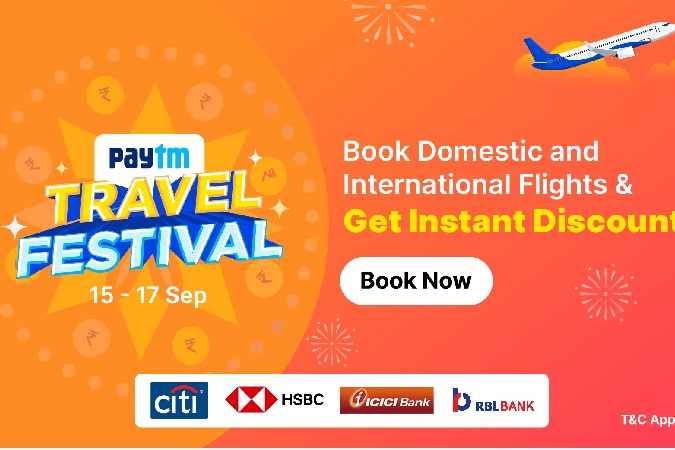 One97 Communications Limited that owns the brand Paytm, India's leading digital payments and financial services company and the pioneer of QR and mobile payments, has announced the ‘Travel Festival Sale’ from 15th-17th September. Ahead of the festive season, the company is offering discounts on domestic and international flights booking, and cashback on bus ticketing.