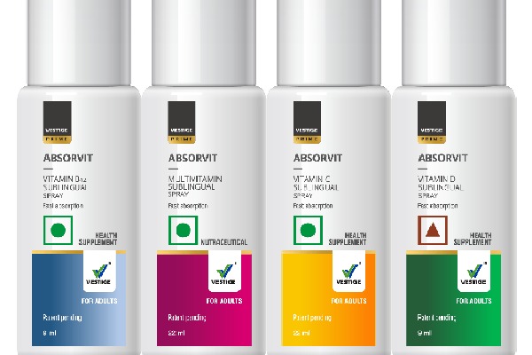 Vitamin supplements- The lack of Vitamins in the daily diet is mostly supplemented through tablets, capsules, or syrups, but the absorption and impact of these are low. Thus to ensure a quick and easy solution, Vestige Prime Absorvit Oral sublingual spray is helpful, which can provide the body with Vitamin C, D, B12 and multivitamins. In addition, it also has 3-10 times better absorption capability.