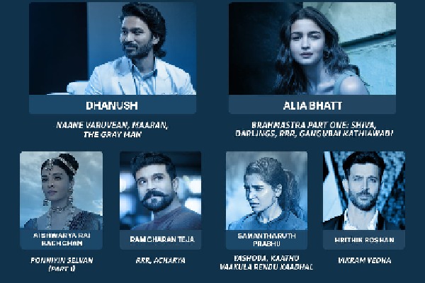 ముంబై, భారతదేశం—డిసెంబర్ 07, 2022—సినిమా, టీవీ మరియు సెలబ్రిటీ కంటెంట్ కోసం ప్రపంచంలో అత్యంత ప్రజాదరణ పొందిన మరియు అధికారిక మూలమైన IMDb, నేడు 2022లో అత్యంత ప్రజాదరణ పొందిన భారతీయ తారలను ప్రకటించింది. IMDb దాని ఖచ్చితమైన టాప్ 10 జాబితాలను IMDb యొక్క  200 మిలియన్ల కంటే ఎక్కువ ఉన్న నెలవారీ సందర్శకుల వాస్తవ పేజీ వీక్షణల ఆధారంగా నిర్ణయిస్తుంది. ది గ్రే మ్యాన్ మరియు తిరుచిత్రంబలం వంటి బహుభాషా చిత్రాల విజయవంతమైన విడుదలలతో అభిమానుల ఆసక్తిని పెంచి ధనుష్ ఈ సంవత్సరంలో అగ్రస్థానం పొందిన సెలబ్రిటీ.