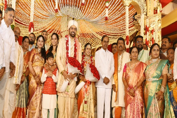 ఎమ్మెల్సీ శేరి సుభాష్ రెడ్డి కూతురు వివాహానికి హాజరై వధూవరులను ఆశీర్వదించి, శుభాకాంక్షలు తెలిపిన ముఖ్యమంత్రి కె. చంద్ర శేఖర రావు