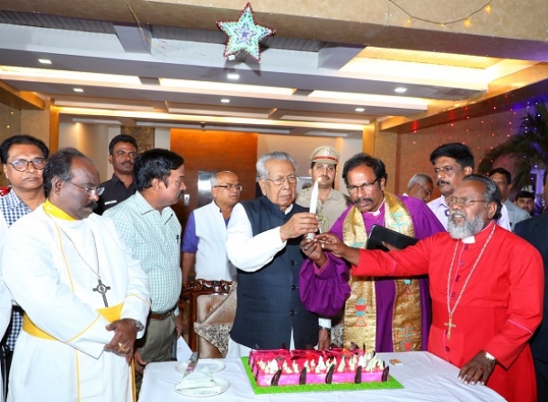 Carols singing in English and Telugu by CSI Krishna and Godavari Diocese and others, dance drama on Birth of Jesus by children of NSM school, dance presentation on Pray for India, stood as a special attraction. Governor Harichandan participated in the cake cutting event followed by Candle Light Service.