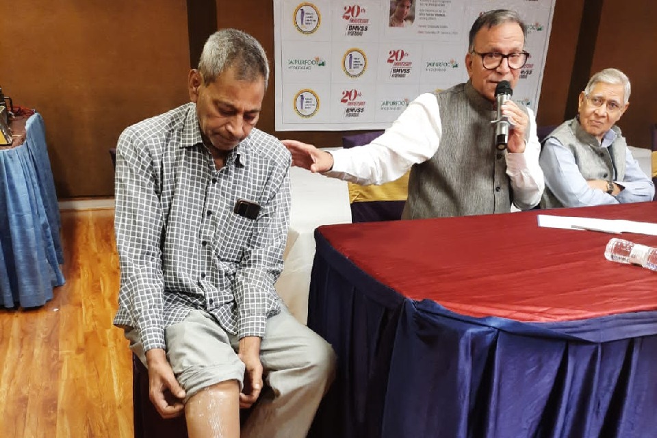 Hyderabad, 22 December 2023: The pioneer in artificial limb known around the world as Jaipur Foot by Bhagwan Mahavir Viklang Sahayata Samiti (BMVSS) - Hyderabad Branch is celebrating its 20th anniversary on 6 January 2024 at Shilpakala Vedika in Hitech City by hosting “The UNSTOPABBLES”, a program to honor those who did not allow disability to stand in the way of fulfilling their dreams. The list includes Ms. Sudha Chandran - renowned dancer and actor; Mr. Vikram Agnihotri - Activist and Motivational Speaker, Manoj Bhingare - Artist , Naga Naresh Karutura - an IIT Chennai alumna, presently working with Google USA; Mr. Suraj Tiwari, civil service batch of 2022 , Shri Hari Budha Magar - War Veteran & Mountaineer, who scaled the Mount Everest who will share their stories of hope, inspiration and success with their limbs. Along with felicitations will be an unforgettable Kavi Sammelan by renowned Kavi Shri Kumar Vishwas and his team. Mr P.C.Parakh, IAS (Retd), Patron & Mr Inder Chand Jain, Hon Secretary of BMVSS will address the press.