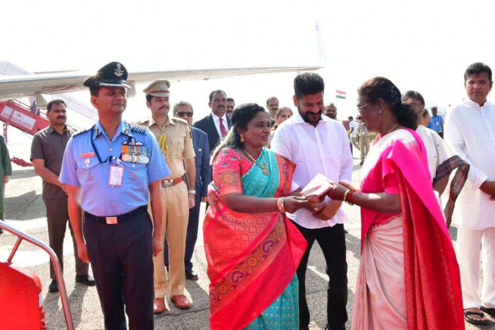 Governor Tamilisai, CM Revanth Reddy, and other cabinet Ministers gave a warm send off to President Murmu