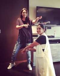 బ్లాక్ టీషర్ట్, టార్న్ జీన్స్, వైట్ షూస్ లో ఉన్న చోప్రా సానియా తలపై టెన్నిస్ రాకెట్ పెట్టి, దానిపై మరో చేతితో ఆశీస్సులు ఇస్తున్నట్లున్న ఫొటోను బాలీవుడ్ భామ సానియా ట్విట్టర్ లోనే పోస్ట్ చేసింది. ‘‘సానియాకు అవసరం లేదు. అయినా నా దీవెనలు అందజేశా. అది కూడా ఆమె రాకెట్ తోనే!’’ అని సదరు ఫొటోకు పరిణీతి కామెంట్ జత చేసింది.