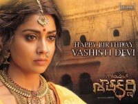 బాలకృష్ణ తన 100వ చిత్రంలో గౌతమీపుత్ర శాతకర్ణిగా నటిస్తుండగా, ఆయన భార్య వశిష్టి దేవి పాత్రకు అందాల తార శ్రియ ఎంపికైన సంగతి తెలిసిందే. ఇటీవలి షెడ్యూల్ లో ఆమె పాత్ర షూటింగ్ కూడా మొదలైంది. నేడు శ్రియ పుట్టినరోజు కావడంతో ఆమె క్లోజప్ తో కూడిన పోస్టర్ ను చిత్ర యూనిట్ విడుదల చేసింది. ఈ పోస్టర్లో మహారాణి గెటప్ లో శ్రియ కనిపిస్తుండగా, 'హ్యాపీ బర్త్ డే వశిష్టి దేవి' అన్న క్యాప్షన్ కూడా ఉంది. ప్రస్తుతం క్రిష్ దర్శకత్వంలో షూటింగ్ దశలో ఉన్న చిత్రాన్ని సాధ్యమైనంత త్వరలో పూర్తి చేసి 2017 సంక్రాంతికి విడుదల చేయాలన్న యోచనలో చిత్ర నిర్మాతలు ఉన్నారు.