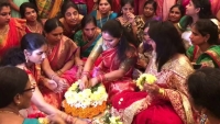హైదరాబాద్ లోని తెలంగాణ సీఎం కేసీఆర్ క్యాంపు కార్యాలయంలో ఈరోజు బతుకమ్మ వేడుకలు ఘనంగా జరుగుతున్నాయి. వేడుకల్లో పాల్గొన్న మహిళలు బతుకమ్మ పాటలు పాడుతూ ఉత్సాహంగా గడుపుతున్నారు. నిజామాబాద్ ఎంపీ, తెలంగాణ జాగృతి అధ్యక్షురాలు కవిత బతుకమ్మ పాటలు పాడుతూ, ఇతర మహిళల చేత పాడిస్తూ వేడుకలు నిర్వహిస్తున్నారు. ఈ వేడుకల్లో తెలంగాణ సీఎం కేసీఆర్ సతీమణి శోభ, కోడలు శైలిమతో పాటు ఆయన బంధువులు కూడా పాల్గొన్నారు. మహిళల ఆటపాటలతో ఆ ప్రాంతంలో సందడి వాతావరణం నెలకొంది.