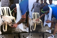 : జాగిలానికి నీరు తాగించి, ప్రేమగా తల నిమిరిన కోహ్లీ!