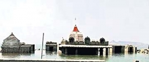 తెలంగాణలోని నాగర్ కర్నూల్ జిల్లా సోమశిల వద్ద కృష్ణానది అవతలి ఒడ్డున పురాతనమైన పవిత్ర పుణ్యక్షేత్రం సంగమేశ్వరాలయం ఉంది. ఎంతో ప్రశస్తి కలిగిన ఈ ఆలయం శ్రీశైలం బ్యాక్ వాటర్ లో పూర్తిగా మునిగిపోయింది. అయితే, గత వారం రోజులుగా నీటి మట్టం భారీగా తగ్గడంతో, గుడి పడమటి భాగం పూర్తిగా తేలింది. కానీ, గర్భగుడిలో మాత్రం మోకాళ్ల లోతు వరకు ఇంకా నీళ్లు ఉన్నాయి. ఈ నేపథ్యంలో, ఆలయ అర్చకులు రఘురామశర్మ శుద్ధి కార్యక్రమాలను నిర్వహించారు. శివమాలధారులు గర్భగుడిలోని వేపలింగానికి ప్రత్యేక పూజలు నిర్వహించారు.