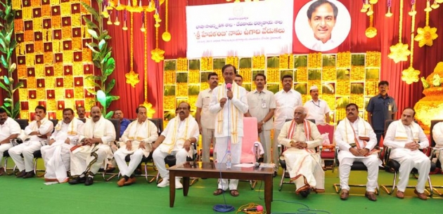 తెలంగాణ రాష్ట్ర ప్రజలకు సీఎం కేసీఆర్ ఉగాది శుభాకాంక్షలు తెలిపారు. ప్రగతి భవన్ లో ఈ రోజు జరిగిన ఉగాది వేడుకల్లో ముఖ్యమంత్రి పాల్గొన్నారు. పండితులు సంతోష్ కుమార్ శర్మ పంచాంగ పఠనం తర్వాత సీఎం మాట్లాడారు. హేవళంబి అద్భుతమైన ఫలితాలు ఇస్తుందని చెప్పడంతో తనకు ఆనందంగా ఉందన్నారు. సంతోష శర్మ శుభగ్రహ దృష్టి ఉండడం వల్ల మంచి ఫలితాలు ఉంటాయని, వర్షాలు బాగా కురుస్తాయని, పంటలు బాగా పండుతాయని చెప్పారని, ఇంతకంటే మనకు కావాల్సిందేముందన్నారు. అంతా బాగా జరగాలని కోరుకుందామన్నారు. అయితే, పోలీసులు జాగ్రత్తగా ఉండాలని పండితులు చెప్పారు గనుక... భద్రత విషయంలో జాగ్రత్తగా మసలుకోవాలని సూచించారు.