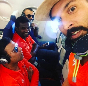 ఐపీఎల్ పదో సీజన్ లోసన్ రైజర్స్ హైదరాబాద్ జట్టుకు యువరాజ్ సింగ్ ప్రాతినిధ్యం వహిస్తుండగా, ఆ జట్టుకు మార్గ నిర్దేశకుడిగా వీవీఎఎస్ లక్ష్మణ్ వ్యవహరిస్తున్నారు. అయితే, పలు జట్లతో తలపడే క్రమంలో ఆయా ప్రాంతాలకు వెళ్లే నిమిత్తం జట్టు సభ్యులు విమాన ప్రయాణం చేస్తుండగా ఓ సరదా సంఘటన చోటు చేసుకుంది. లక్ష్మణ్, సన్ రైజర్స్ బౌలింగ్ కోచ్ ముత్తయ్య మురళీధరన్ పక్కపక్క సీట్లలో కూర్చున్నారు.
