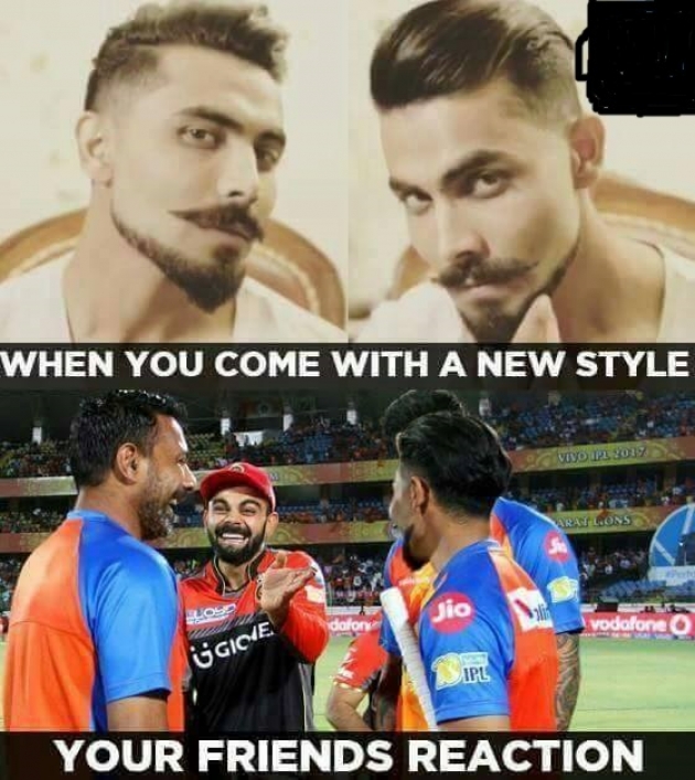 ఐపీఎల్ సీజన్-10కు సరికొత్త హెయిర్ స్టైల్ తో వచ్చిన రవీంద్ర జడేజాను చూసిన టీమిండియా కెప్టెన్ విరాట్ కోహ్లీ పడిపడి నవ్వాడు. అలా నవ్వుతుండగా తీసిన ఫోటో సోషల్ మీడియాలో వైరల్ అవుతోంది. విభన్నమైన హెయిర్ స్టైల్ తో పాటు గడ్డాన్ని కూడా విభిన్నంగా స్టైల్ చేయించుకున్ని రవీంద్ర జడేజాను బెంగళూరు, గుజారాత్ మ్యాచ్ కు ముందు ప్రాక్టీస్ సెషన్ సందర్భంగా కోహ్లీ చూశాడు.