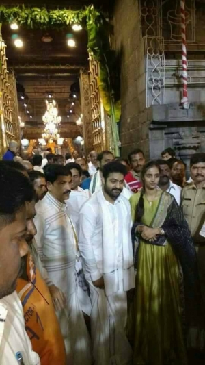 ప్రముఖ సినీ నటుడు జూనియర్ ఎన్టీఆర్ తిరుమల శ్రీవారిని దర్శించుకున్నాడు. జూనియర్ ఎన్టీఆర్ దంపతులు నేటి ఉదయం తెల్లవారు జామున సుప్రభాత సేవలో పాల్గొని శ్రీవారిని దర్శించారు. వారితో పాటు ప్రముఖ దర్శకుడు కొరటాల శివ కూడా ఉండడం విశేషం. ఈ సందర్భంగా జూనియర్ ఎన్టీఆర్ మాట్లాడుతూ, శ్రీవారి కరుణా కటాక్షం ఎప్పుడూ ఉండాలని ఆకాంక్షించాడు. సుప్రభాత సేవలో పాల్గొనడం ఆనందంగా ఉందని చెప్పాడు.