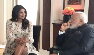 జర్మనీ పర్యటనలో ఉన్న భారత ప్రధానమంత్రి నరేంద్ర మోదీని అక్కడే ఉన్న బాలీవుడ్ హీరోయిన్ ప్రియాంక చోప్రా ఈ రోజు కలిసిన విషయం తెలిసిందే. బెర్లిన్లో ఆమె కాసేపు మోదీతో ముచ్చటించారు. అయితే, ఆమె మోదీతో మాట్లాడుతుండగా కూర్చున్న విధానం, ఆమె వేసుకున్న దుస్తులపై నెటిజన్లు విమర్శలు గుప్పిస్తున్నారు. ఇందుకు సంబంధించిన ఓ ఫొటో ఇప్పుడు ఇంటర్నెట్లో విపరీతంగా వైరల్ అవుతోంది. ఆ ఫొటోలో ప్రధాని మోదీ సాధారణంగా కూర్చుంటే ప్రియాంక చోప్రా మాత్రం మోదీ ముందే కాలుమీద కాలేసుకుని కూర్చుంది. అంతేగాక, భారత ప్రధానిని చూడడానికి వచ్చిన ఆమె వేసుకొచ్చిన డ్రెస్సుపై కూడా నెటిజన్లు మండిపడుతున్నారు. ప్రియాంక చోప్రా అభిమానులు మాత్రం ఆమె ఆత్మవిశ్వాసంతో కూర్చుని మాట్లాడుతోందని అంటున్నారు.
