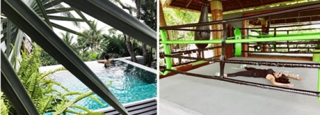 టాలీవుడ్ క్రేజీ కపుల్ నాగచైతన్య-సమంత జంట థాయ్ లాండ్ లో సెలవులు గడిపేందుకు వెళ్లారని సమాచారం. 'రారండోయ్ వేడుక చూద్దాం' సినిమా విజయం నేపథ్యంలో టూర్ వేసుకున్న ఈ జంట సమంతకు ఇష్టమైన ప్రదేశానికి ఎగిరిపోయింది. ఈ నేపథ్యంలో తన సోషల్ మీడియాతో అభిమానులకు టూర్ విశేషాలను సమంత చూచాయగా వివరిస్తోంది. నిన్న బికినీతో స్విమ్మింగ్ పూల్ లో జలకాలాడుతున్న ఫోటోను ఇన్ స్టా గ్రామ్ లో పోస్టు చేసిన సమంత, నేడు బద్దకంగా సెలవు రోజు వర్కవుట్ ఎలా చేస్తాను? అంటూ బాక్సింగ్ రింగ్ లో వెల్లకిల పడుకున్న ఫోటోను పోస్టు చేసింది. ఈ ఫోటోలు సమంత అభిమానులను అలరిస్తున్నాయి.