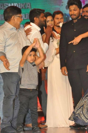 డీజే ఆడియో ఫంక్షన్లో అల్లు అర్జున్ కుమారుడు అయాన్ స్టేజీపై చేతులెత్తి అందరికీ దండం పెట్టిన విషయం తెలిసిందే. ఈ రోజు ఓ ఇంటర్వ్యూలో మాట్లాడుతూ ఆ విషయాన్ని గుర్తు తెచ్చుకున్న బన్ని.. తన కొడుకు స్టేజీపై నిలబడి అలా చేస్తాడని అనుకోలేదని.. అది చూసి తాను షాకయ్యానని అన్నాడు. తనకు శివుడు అంటే ఇష్టమని, అందుకే తన బిడ్డలకు ఆయన పేరు కలిసి వచ్చే పేర్లు పెట్టుకున్నానని చెప్పాడు. శివుడు ఓ పవర్ ఫుల్ గాడ్ అని బన్ని అన్నాడు. డీజే సినిమాలో తనకు తండ్రిగా తనికెళ్ల భరణి నటిస్తున్నారని అల్లు అర్జున్ అన్నాడు. తన సినిమాల్లో ఆయనే అధికంగా ఫాదర్గా నటిస్తున్నారని, ఆయన ఎంత మేధావో అంత సరదాగా కూడా ఉంటారని అన్నాడు.