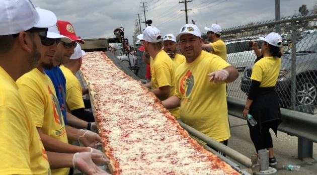 అమెరికాలో 100 మందికి పైగా చెఫ్లు ఒక్కచోట చేరారు. కొందరు వాలంటీర్లను తమకు సాయంగా తెచ్చుకున్నారు. 3,632 కేజీల రొట్టెల పిండిని, 1,634 కేజీల చీజ్ను, 2,542 కేజీల సాస్ను తీసుకొచ్చారు. రెండు కిలోమీటర్ల మేర పిండిని వేసి, మూడు ఇండస్ట్రియల్ ఓవెన్లను వాడి దాన్ని వేడి చేశారు. ఎనిమిది గంటలపాటు శ్రమించి 1,930.39 మీటర్ల పిజ్జాను తయారుచేసి గతంలో ఇటలీలోని నేపుల్స్లో తయారు చేసిన 1853.88 మీటర్ల పొడవైన పిజ్జా రికార్డును బద్దలు కొట్టేశారు.