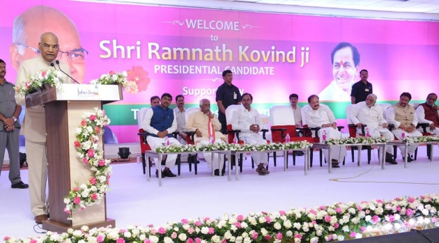 ఇంకో విషయానికి కూడా ఆయనకు కృతజ్ఞతలు చెప్పాల్సి వుందని, తాను యూపీకి చెందిన వ్యక్తినైనందున తనకు అర్థం కావాలన్న ఉద్దేశంతోనే కేసీఆర్ హిందీలో ప్రసంగించారని చెప్పారు. పూర్వపు రాష్ట్రపతులు డాక్టర్ రాజేంద్రప్రసాద్, సర్వేపల్లి రాధాకృష్ణన్, ఆర్ వెంకట్రామన్, అబ్దుల్ కలామ్ లు చూపిన దారిలో తాను నడుస్తానని అన్నారు. ముఖ్యంగా ఇక్కడి వారైన జాకీర్ హుస్సేన్, నీలం సంజీవరెడ్డిలు కూడా తనకు ఆదర్శమేనని తెలిపారు. భారత రాజ్యాంగాన్ని పరిరక్షించే బాధ్యత తనపై పెట్టాలని భావించిన ఎన్డీయేకు, తనకు మద్దతివ్వాలని నిర్ణయించుకున్న టీఆర్ఎస్ పార్టీకి కృతజ్ఞతలు చెప్పారు.