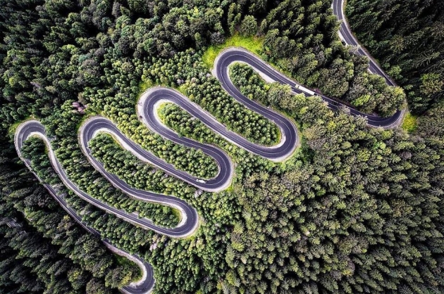 చుట్టూ దట్టమైన అడవి...పాములా మెలికలు తిరిగే రోడ్డు.. సుమారు 54.4 కిలోమీటర్ల పొడవైన రోడ్డును డ్రోన్ సాయంతో ఒక ఫోటో గ్రాఫర్ తీసిన ఫోటో 2017 డ్రోన్ ఫోటోగ్రఫీలో ఉత్తమ ద్వితీయ చిత్రం బహుమతిని గెల్చుకుంది. కేవలం డ్రోన్ ల సాయంతో తీసిన ఫొటోలకు మాత్రమే ఈ పోటీలు నిర్వహించారు. ఈ పోటీల్లో కాలిన్ స్టాన్ అనే ఫ్రొటోగ్రాఫర్ డ్రోన్ ఉపయోగించి రొమేనియాలోని ట్రాన్సిల్వేనియా నుంచి రొమేనియా నగరానికి మధ్యనున్న 54.4 కిలోమీటర్ల దట్టమైన అడవిలో సాగే రహదారిని డ్రోన్ తో చిత్రీకరించాడు. ఈ కారడవిలో ప్రయాణం చేస్తే ఎలా ఉంటుందో కానీ... ఫోటో మాత్రం అద్భుతంగా వచ్చింది. పొడవైన పైన్ చెట్ల మధ్య పెద్ద నాగుపాము మెలికలు తిరిగి ఉన్నట్టు ఉంది. ఈ ఫోటో చూసిన అందర్నీ ఆకట్టుకుంటోంది.