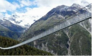 స్విట్జర్లాండ్లోని జెర్మాట్ మ్యాటర్హాన్లోని అతిపొడవైన వేలాడే పాదచారుల బ్రిడ్జి చార్ల్స్ కౌనెన్ సస్పెన్షన్ బ్రిడ్జిపై పర్యాటకుల రాకపోకలు ప్రారంభమయ్యాయి. 494 మీటర్ల పొడవున్న ఈ బ్రిడ్జి, ఇంతకు ముందు జర్మనీలో ఉన్న అతిపొడవైన వేలాడే బ్రిడ్జి పొడవును దాటేసింది. కేవలం 10 వారాల్లోనే ఈ బ్రిడ్జి నిర్మాణాన్ని పూర్తి చేశారు. భూమికి 85 మీటర్ల ఎత్తులో ఉన్న ఈ బ్రిడ్జిని దాటడానికి పర్యాటకులు అమితాసక్తి చూపిస్తున్నారు. కేవలం 65 సెంటీమీటర్లు మాత్రమే నడవగల వెడల్పు ఉన్న ఈ బ్రిడ్జి ద్వారా ఆల్ఫ్స్ పర్వతాల అందాలు చూడటానికి సందర్శకులు క్యూ కడుతున్నారని స్విస్ ఆల్పైన్ రిసార్ట్ నిర్వాహకులు తెలియజేశారు.