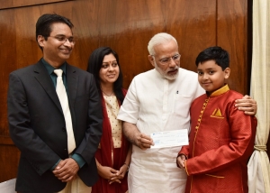 కువైట్ కు చెందిన చెందిన ఓ ఎన్ఆర్ఐ బాలుడు భారత ఆర్మీపై తనకు ఉన్న అభిమానాన్ని చాటుకున్నాడు. ఈ నేపథ్యంలో భారత ఆర్మీ సంక్షేమ నిధికి రూ.18,000 చెక్కును బహూకరించాడు. ఈ చెక్కును స్వయంగా ప్రధాని నరేంద్ర మోదీకి అందజేశాడు. ఈ విషయమై ప్రధానమంత్రి కార్యాలయం (పీఎంఓ) ఓ ట్వీట్ ద్వారా తెలిపింది.