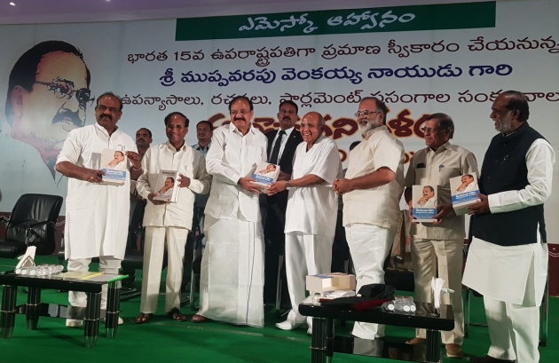 తాను చిన్నప్పుడే తల్లిని కోల్పోయానని, భారతీయ జనతా పార్టీ తనకు తల్లిలాంటిదని ఉపరాష్ట్రపతిగా ఎంపికైన వెంకయ్య నాయుడు అన్నారు. ఆయన ఉపరాష్ట్రపతిగా ఎన్నికైన నేపథ్యంలో గతంలో వెంకయ్య పార్లమెంట్లో చేసిన ప్రసంగాలు, రచనలు, ఉపన్యాసాల సంకలనంతో కూడిన గ్రంథాల ఆవిష్కరణ సభ ఈ రోజు హైదరాబాద్ లో జరిగింది. ‘అలుపెరుగని గళం - విరామమెరుగని పయనం’ పేరుతో రూపొందించిన ఈ పుస్తకాలను ఆవిష్కరించారు. ఈ సభకు ఏపీ అసెంబ్లీ స్పీకర్ కోడెల శివప్రసాద్రావు, తెలంగాణ అసెంబ్లీ స్పీకర్ మధుసూదనాచారి, రామోజీ గ్రూప్ సంస్థల ఛైర్మన్ రామోజీరావు అతిథులుగా హాజరయ్యారు. ఈ సందర్భంగా వెంకయ్య నాయుడు మాట్లాడుతూ.. ప్రపంచం ఆర్థిక మందగమనంలో ఉన్నప్పటికీ భారత్ మాత్రం స్థిరంగా ఉందని గుర్తు చేశారు.