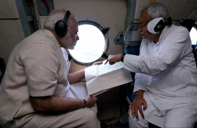 భారీగా కురుస్తున్న వర్షాల కారణంగా వరదలతో కొట్టుమిట్టాడుతున్న బిహార్లోని 21 జిల్లాల పరిస్థితిని ప్రధాని మోదీ ఏరియల్ సర్వే ద్వారా సమీక్షించారు. ఆయనతో పాటు బిహార్ ముఖ్యమంత్రి నితీశ్ కుమార్, డిప్యూటీ సీఎం సుశీల్ మోదీ కూడా ఉన్నారు. బిహార్ పరిస్థితి మెరుగుపడటం కోసం రూ. 500 కోట్లను తక్షణ సాయం కింద ప్రధాని మోదీ ప్రకటించారు. ఈ వరదల కారణంగా దాదాపు 2 కోట్ల మంది ఛిన్నాభిన్నమయ్యారు. 415 మంది ప్రాణాలు కోల్పోయారు. ముజఫర్నగర్, సమస్తిపుర్, దర్భంగా జిల్లాల్లో వరద ప్రభావం తీవ్రంగా ఉంది. బాగ్మతి, బుర్హీ గండక్ నదులు ఉప్పొంగి ప్రవహిస్తుండటంలో ఈ జిల్లాల్లోని పట్టణాలు పూర్తిగా జలమయం అయ్యాయి.