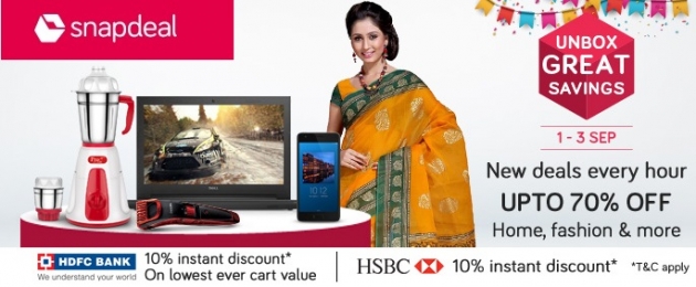 : భారీ డిస్కౌంట్లు ప్రకటిస్తూ 'స్నాప్ డీల్' మూడు రోజుల ఫెస్టివ్ డీల్