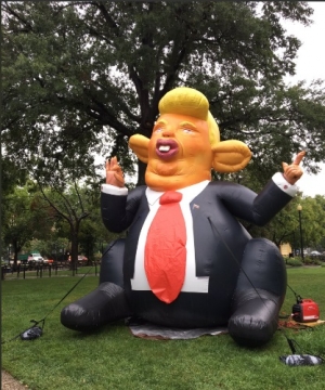 ఈ బెలూన్ బొమ్మకు రష్యన్ జెండా పిన్ను కూడా అతికించారు. అధ్యక్షుడి స్థానంలో ఉన్న ట్రంప్ కూడా ఎలుకలాగే మందబుద్ధితో వ్యవహరిస్తున్నారని, అందుకు నిరసనగా ఈ బెలూన్ బొమ్మను తయారుచేసినట్లు దీని సృష్టికర్త జాన్ పోస్ట్ లీ తెలిపాడు. ఈ బొమ్మతో సెల్ఫీలు దిగడానికి అమెరికన్లు ఎగబడుతున్నారు. ట్రంప్ కోడి బొమ్మ కంటే ఈ ట్రంప్ ఎలుక బొమ్మను ప్రజలు ఎక్కువగా ఆదరిస్తున్నట్లు తెలుస్తోంది.
