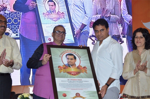 తెలంగాణ ఐటీ శాఖ మంత్రి కేటీఆర్ మరో జాతీయ అవార్డును అందుకున్నారు. ఐటీ మినిస్టర్ ఆఫ్ ది ఇయర్ అవార్డుతో ప్రముఖ సంస్థ స్కోచ్ కేటీఆర్ ను సన్మానించింది. 49వ స్కోచ్ సమ్మిట్ సందర్భంగా ఢిల్లీలో ఈరోజు ఆయన అవార్డును అందుకున్నారు. ఐటీ రంగంలో తెలంగాణను ముందుకు తీసుకెళుతున్నందుకు గుర్తింపుగా ఆయనను ఈ అవార్డుకు ఎంపిక చేశారు. ఈ సందర్భంగా కేటీఆర్ మాట్లాడుతూ, బ్రాడ్ బ్యాండ్ సేవలను ఇంటింటికీ అందిస్తున్న తొలి రాష్ట్రం తెలంగాణ అని చెప్పడానికి గర్విస్తున్నానని చెప్పారు. ఇంటింటికీ స్వచ్ఛమైన తాగు నీటిని అందించడమే కాకుండా, ఇంటర్నెట్ సేవలను కూడా అందిస్తున్నామని తెలిపారు.