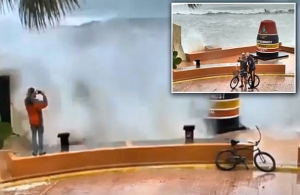 ఓ వైపు నుంచి పెను ప్రమాదం ఇర్మా తుపాను రూపంలో దూసుకు వస్తోందని, ప్రజలు తీర ప్రాంతానికి సాధ్యమైనంత దూరంగా వెళ్లిపోవాలని అధికారులు నెత్తీ నోరూ మొత్తుకుని చెబుతున్నా, కొందరు మాత్రం నిమ్మకు నీరెత్తినట్టు వ్యవహరిస్తూ ప్రాణాలపైకి తెచ్చుకుంటున్నారు. ఫ్లోరిడాకు దక్షిణంగా సముద్రంలో విహరిస్తున్న ఓ జంట, ఇర్మా ప్రభావంతో పది అడుగులకు పైగా ఎత్తులో వస్తున్న అలలకు ఎదురుగా నిలబడి సెల్ఫీ దిగేందుకు ప్రయత్నించింది. ఉద్ధృతంగా వచ్చిన అల అతన్ని బలంగా తాకగా, బొక్క బోర్లా పడ్డాడు. అలల బలం అప్పటికి తెలిసొచ్చిందో ఏమో.. వెంటనే లేచి అక్కడి నుంచి వెళ్లిపోయాడు. ఈ ప్రాంతంలో ప్రభుత్వ హెచ్చరికలను చాలా మంది పట్టించుకోకుండా అక్కడే ఉండిపోయినట్టు తెలుస్తోంది.