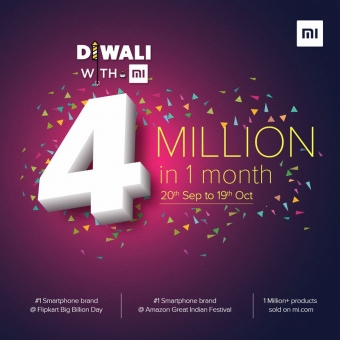 దీపావళి పండగ సీజన్లో దేశవ్యాప్తంగా నాలుగు మిలియన్లకు పైగా షియోమి స్మార్ట్ఫోన్లు అమ్ముడుపోయాయని కంపెనీ వెల్లడించింది. ఆన్లైన్ మార్కెటింగ్ దిగ్గజాలు ఫ్లిప్కార్ట్, అమెజాన్ అమ్మకాల్లో షియోమి బ్రాండ్ నెం. 1గా నిలిచిందని షియోమి ఇండియా మేనేజింగ్ డైరెక్టర్ మను కుమార్ జైన్ వెల్లడించారు. దీనికి సంబంధించి ఆయన ఫేస్బుక్లో పోస్ట్ పెట్టారు.
