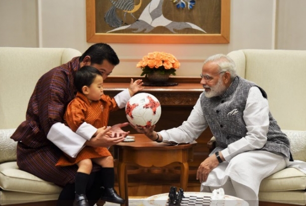 భూటాన్ రాజు జిగ్మే ఖేసర్ నాంగ్యల్ వాంగ్చుక్ కుటుంబసమేతంగా నాలుగు రోజుల పాటు భారత దేశ పర్యటనకు వచ్చిన సంగతి తెలిసిందే. వచ్చిన మొదటి రోజే భూటాన్ రాజు కుమారుడు, బుల్లి యువరాజు గ్యాల్సీ భారత మీడియా దృష్టిని విపరీతంగా ఆకర్షించాడు. విదేశాంగ మంత్రి సుష్మా స్వరాజ్ సమావేశం తర్వాత భూటాన్ రాజు కుటుంబం ప్రధాని మోదీతో భేటీ అయ్యింది. ఈ భేటీలో భాగంగా ప్రధాని మోదీ, బుల్లి యువరాజుకు బహుమతులు ఇచ్చారు.