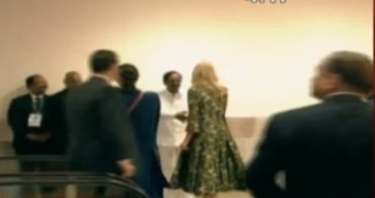 అనంతరం ఎస్కలేటర్ ద్వారా ఆమె కిందకు వచ్చారు. ఆమె కోసం తెలంగాణ ముఖ్యమంత్రి కేసీఆర్, గవర్నర్ నరసింహన్, కేంద్ర మంత్రి నిర్మలా సీతారామన్ వేచి చూస్తున్నారు. కిందకు రాగానే కేసీఆర్ ను ఆమె నవ్వుతూ పలకరించారు. షేక్ హ్యాండ్ ఇచ్చారు. ఈ సందర్భంగా హైదరాబాదుకు వచ్చిన ఇవాంకకు కేసీఆర్ స్వాగతం పలికారు. ఆ తర్వాత నరసింహన్, నిర్మలతో కూడా ఇవాంక కరచాలనం చేశారు. అనంతరం ఆమె జీఈఎస్ సదస్సులోకి అడుగుపెట్టారు.