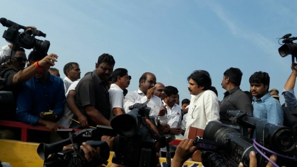 తొలిసారి పోలవరం ప్రాజెక్టును సందర్శించడంతో పరిసర ప్రాంతాల పవన్ అభిమానులు అక్కడికి చేరుకుని భారీ ఎత్తున జిందాబాద్ నినాదాలు చేశారు. వారి నినాదాలు పలుమార్లు ఇబ్బంది పెట్టడంతో వారిని పవన్ కల్యాణ్ వారించారు. కాగా, పోలవరం పనులను పరిశీలిచేందుకు వైఎస్సార్సీపీ నేతలు ఈ మధ్యాహ్నం అక్కడికి వెళ్లనున్నారు. పనులు ఎంతవరకు వచ్చాయన్న విషయాన్ని వారు పరిశీలించనున్నారు.