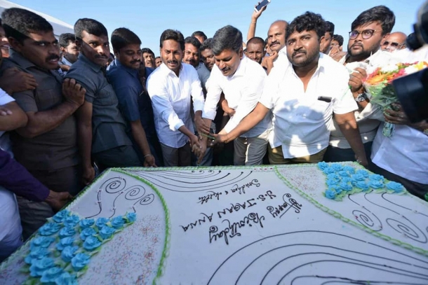 ప్రజా సంకల్పయాత్రలో ఉన్న వైసీపీ అధినేత జగన్మోహన్ రెడ్డి తన పుట్టిన రోజు సందర్భంగా ఓ భారీ కేక్ కట్ చేశారు. ఈ సందర్భంగా జగన్ కు పార్టీ నేతలు, కార్యకర్తలు ఆయనకు శుభాకాంక్షలు తెలిపారు. అనంతరం, అనంతపురం జిల్లాలోని నల్లమడ క్రాస్ నుంచి 41వ రోజు ప్రజా సంకల్పయాత్రను జగన్ ప్రారంభించారు. కాగా, హైదరాబాద్, విజయవాడ, నెల్లూరు, సూళ్లూరుపేట, తిరుపతితో పాటు ఏపీలోని వైసీపీ కార్యాలయాల్లో జగన్ బర్త్ డే వేడుకలను స్థానిక నాయకులు నిర్వహించారు.