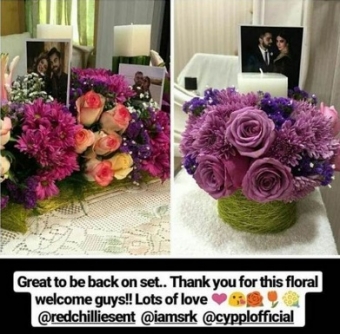 పెళ్లి, హనీమూన్, మొదటి రిసెప్షన్, రెండో రిసెప్షన్, రెండో హనీమూన్... ఇలా అన్ని పనులు పూర్తయ్యాక అనుష్క శర్మ తిరిగి షూటింగ్లకు హాజరవడం ప్రారంభించింది. ప్రస్తుతం షారుక్ సరసన ఆమె నటిస్తున్న 'జీరో' చిత్ర షూటింగ్లో ఆమె పాల్గొంది. పెళ్లి తర్వాత మొదటిసారి షూటింగ్ సెట్లో అడుగుపెట్టిన అనుష్క శర్మకు చిత్ర యూనిట్ రంగురంగుల పూలతో స్వాగతం పలికింది.