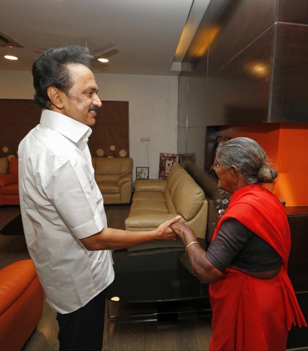 డీఎంకే వీరాభిమాని పాపాత్తికి అరుదైన అవకాశం లభించింది. డీఎంకే నేత స్టాలిన్ నుంచి ఆమె ఆహ్వానం అందుకుంది. అసలు, ఆమెకు ఆహ్వానం ఎందుకు పంపాల్సి వచ్చిందంటే.. ఈరోడ్ జిల్లాకు చెందిన డెబ్భై నాలుగు సంవత్సరాల వృద్ధురాలు పాపాత్తి. డీఎంకేకు ఆమె వీరాభిమాని. కొన్ని రోజుల కిందట పార్టీ కార్యనిర్వాహక అధ్యక్షుడు స్టాలిన్ ని చూడాలనే ఉద్దేశ్యంతో చెన్నైలోని అన్నా అరివాలయం వద్దకు వెళ్లింది.