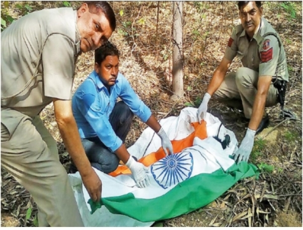 ఢిల్లీ హైకోర్టు పరిసరాల్లో ఇటీవల మృతి చెందిన మన జాతీయ పక్షి నెమలికి జాతీయ పతాకం కప్పి పోలీసులు అంత్యక్రియలు నిర్వహించారు. ఈ సంఘటన వివాదాస్పదంగా మారింది. దీనిపై పలు విమర్శలు తలెత్తాయి. ఈ సంఘటన గురించి పోలీసులు తెలిపిన వివరాలు ఇలా ఉన్నాయి.